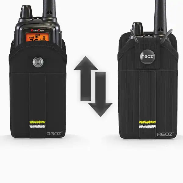 La funda de grado militar Agoz para radio bidireccional Midland es ideal para quienes buscan algo resistente y con un perfil minimalista. La funda viene en un solo color negro pero ofrece un gran diseño y tiene un interior suave para ayudar a proteger contra caídas. Cuenta con un cordón elástico ajustable con cierre de broche para asegurar la radio dentro de la funda, fácil de sacar la radio y volver a colocarla en la funda con el diseño de apertura superior.