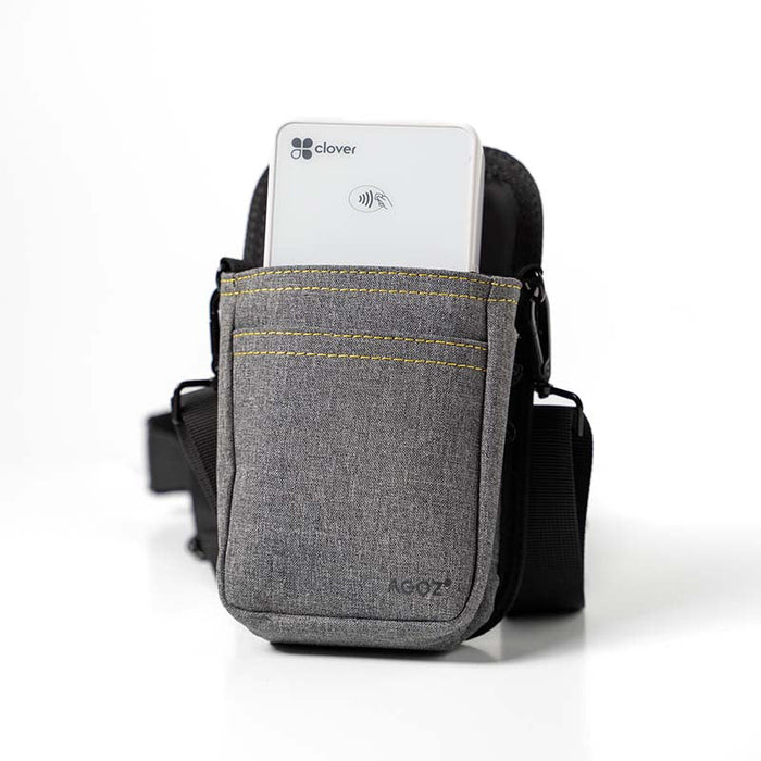La funda Agoz Sling/Cinturón para cintura presenta un diseño único que permite llevar la funda móvil POS ya sea en la cintura o cruzada en el cuerpo. La correa ajustable y el componente acolchado proporcionan un ajuste personalizado, permitiendo a los usuarios llevar la funda cómodamente durante períodos prolongados. Esta funda es ideal para empleados que trabajan en restaurantes, bares, cafeterías y tiendas minoristas.